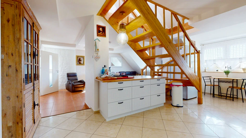 Dieses vollständig ausgestattete Apartment erstreckt sich über zwei Etagen und eignet sich hervorragend als Kapitalanlage, da es stabile Mieteinnahmen durch touristische Vermietung generiert.