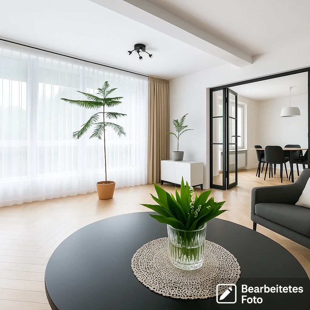 - Das erste Foto in unserer Galerie wurde leicht bearbeitet, um zu veranschaulichen, wie die Wohnung aussehen könnte – beispielsweise durch eine geänderte Wandfarbe. Die nachfolgenden Bilder zeigen den tatsächlichen Zustand der Immobilie.