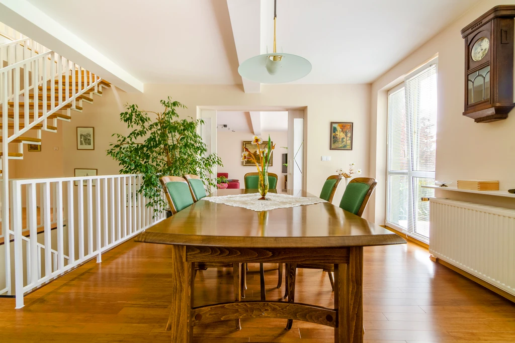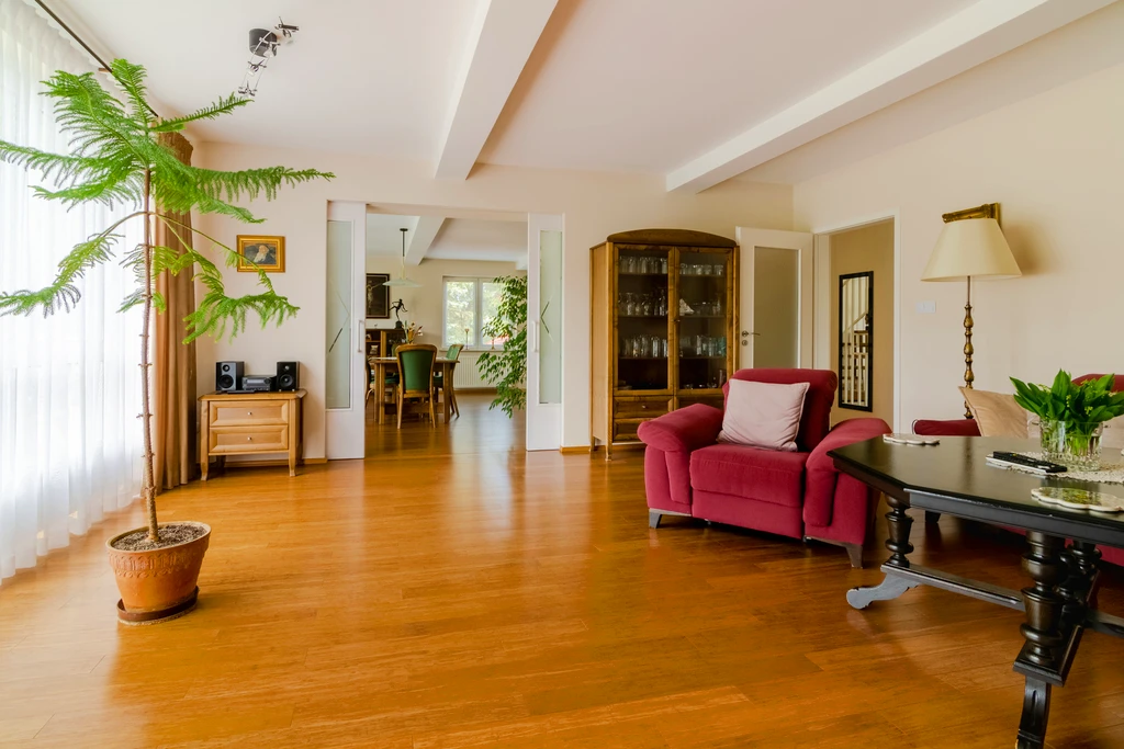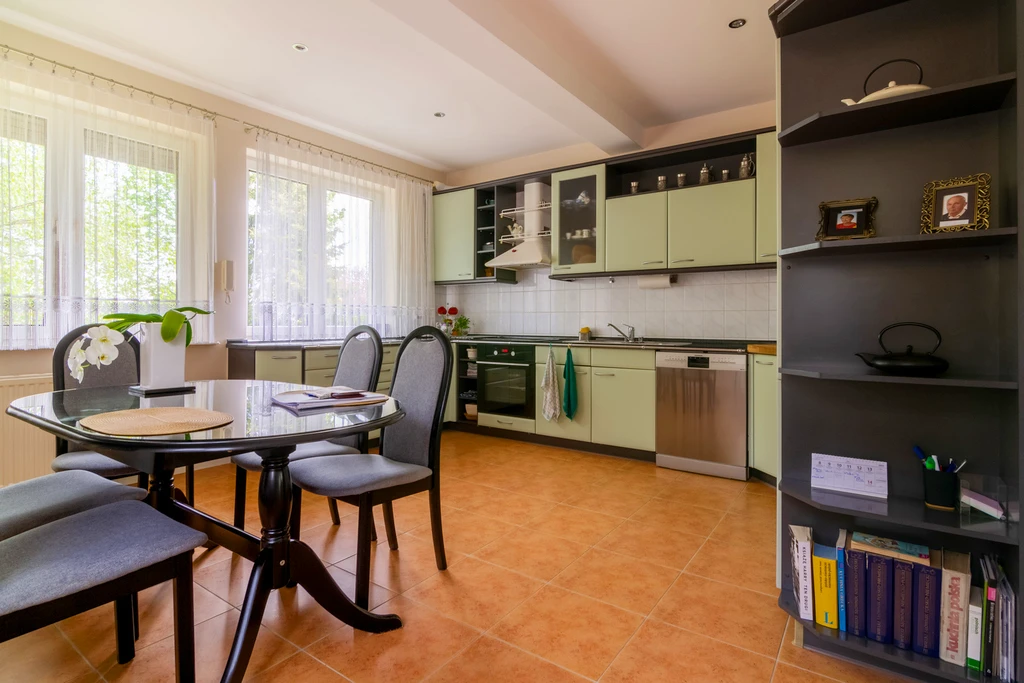 Dieses gepflegte, freistehende Einfamilienhaus mit einer Gesamtfläche von 288,5 m² befindet sich auf einem ebenen, rechteckigen Grundstück von 1.984 m² im malerischen Stadtteil Dąbie auf der rechten Oderseite Szczecins. Die ruhige Lage mitten im Grünen – nur wenige Minuten vom Dąbie-Waldpark entfernt – bietet eine einzigartige Kombination aus naturnahem Wohnen und schneller Erreichbarkeit der Innenstadt (ca. 10–15 Minuten Fahrt).