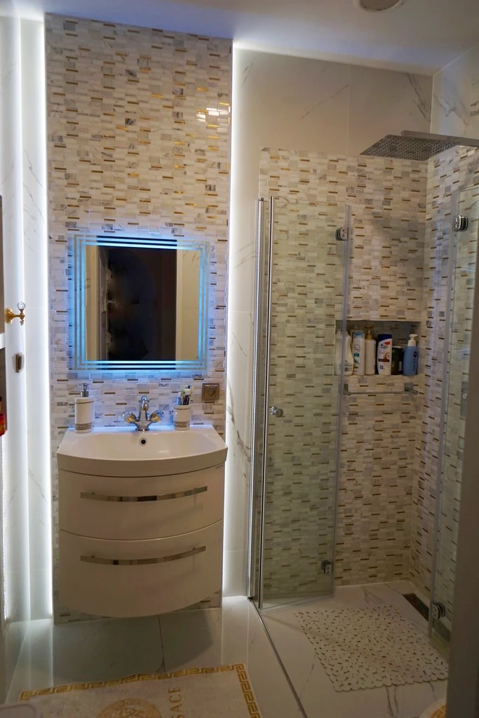 In den beiden Badezimmern erwartet Sie stilvolle italienische Sanitärausstattung, moderne Duschen sowie stimmungsvolles LED-Lichtkonzept.