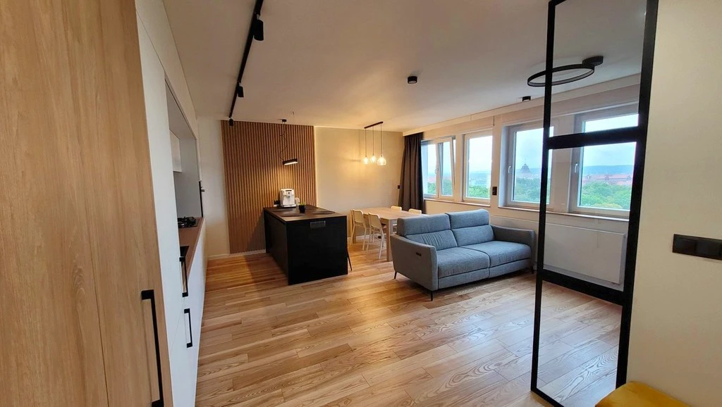 Entdecken Sie diese modern gestaltete, stilvoll renovierte 3-Zimmer-Wohnung im Zentrum von Szczecin – ein Ort, der Komfort, Funktionalität und ein spektakuläres Panorama vereint.