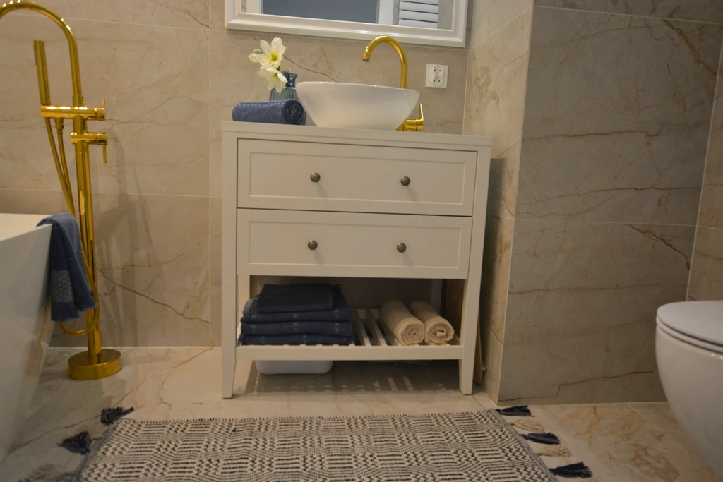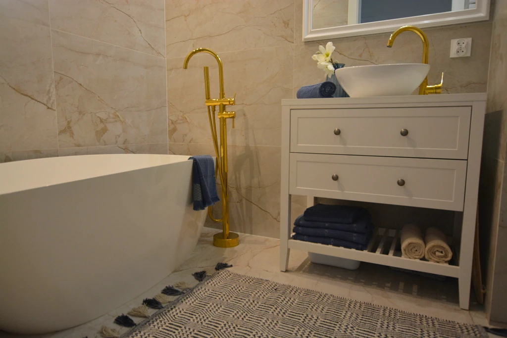- Badezimmer: Modern gestaltet mit hochwertiger Badewanne, WC und stilvollen Fliesen.