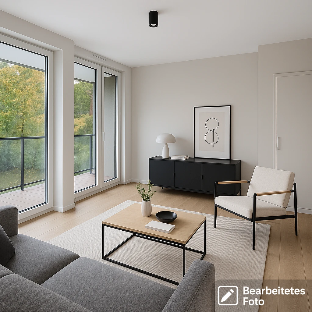 - Das erste Foto in unserer Galerie wurde leicht bearbeitet, um zu veranschaulichen, wie die Wohnung aussehen könnte – beispielsweise durch eine geänderte Wandfarbe. Die nachfolgenden Bilder zeigen den tatsächlichen Zustand der Immobilie.