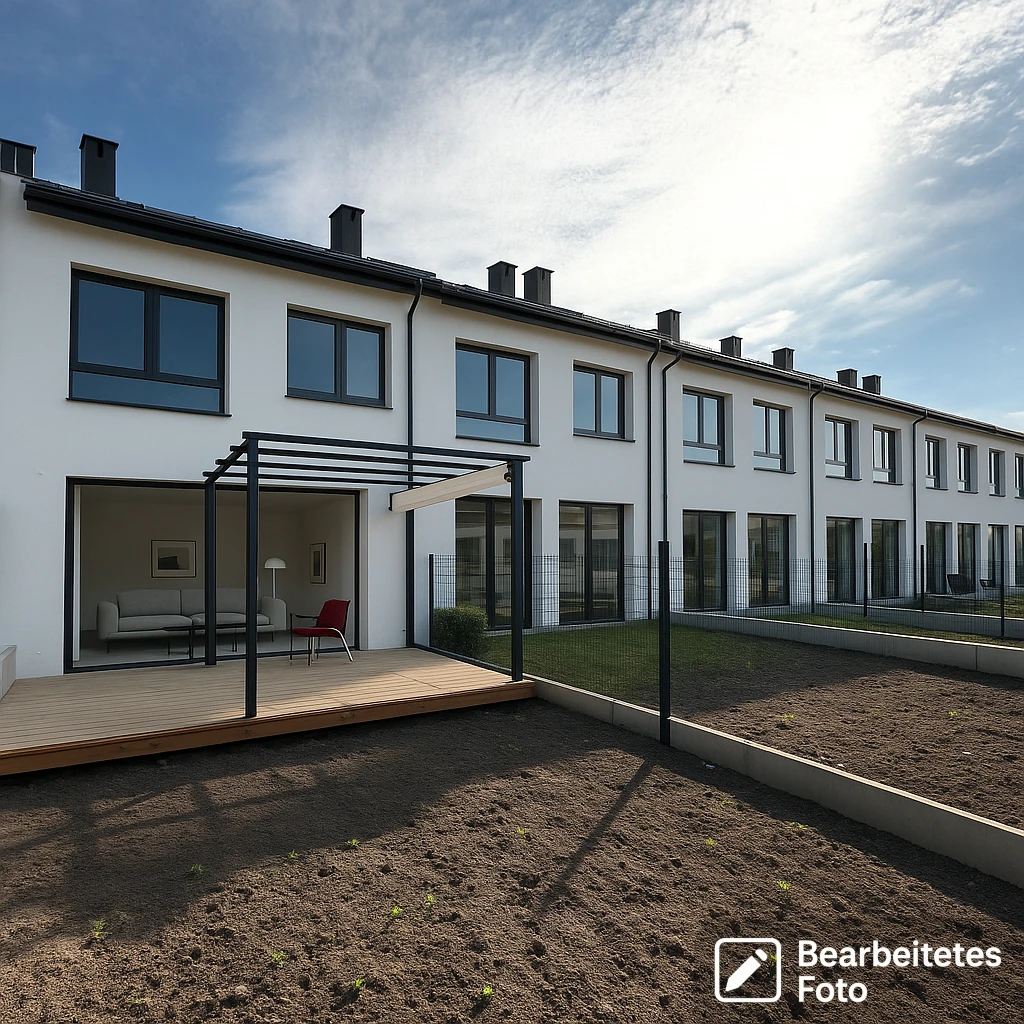 Dieses moderne Reihenhaus aus dem Jahr 2024 bietet hohen Wohnkomfort auf einer Gesamtfläche von 180 m², davon 163 m² Wohnfläche. Es befindet sich auf einem ebenen, rechteckigen Grundstück von 170 m².