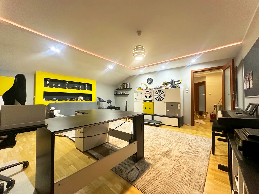 Im Obergeschoss erwartet Sie ein durchdacht gestalteter Privatbereich mit drei gemütlichen Schlafzimmern, einer stilvollen Badezimmeroase sowie einem begehbaren Kleiderschrank.