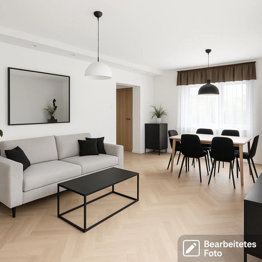 - Das erste Foto in unserer Galerie wurde leicht bearbeitet, um zu veranschaulichen, wie die Wohnung aussehen könnte – beispielsweise durch eine geänderte Wandfarbe. Die nachfolgenden Bilder zeigen den tatsächlichen Zustand der Immobilie.