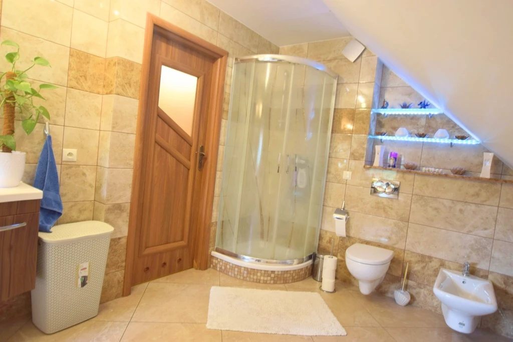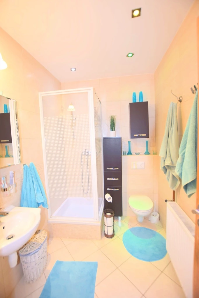 - Unterstützt durch Fußbodenheizung im Badezimmer oben