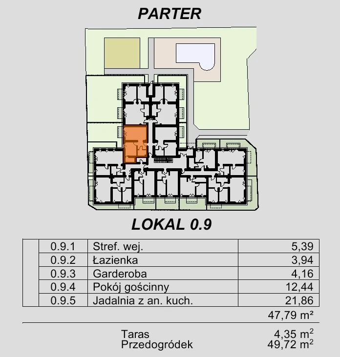 Das zum Verkauf stehende Apartment hat eine Fläche von 47,79 m² und befindet sich im Erdgeschoss. Es besteht aus einem hellen Wohnzimmer mit offener Küche, einem Schlafzimmer, einer Ankleide, einem Badezimmer sowie einem Vorraum. Vom Wohnzimmer aus gelangen Sie direkt auf eine sonnige Terrasse und in den privaten Gartenbereich mit fast 50 m² Fläche – ideal zum Entspannen und Genießen ruhiger Stunden im Freien.