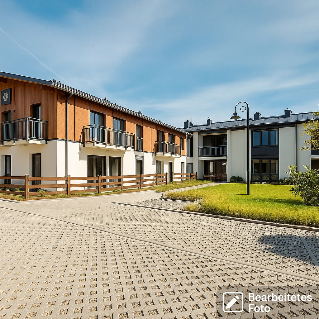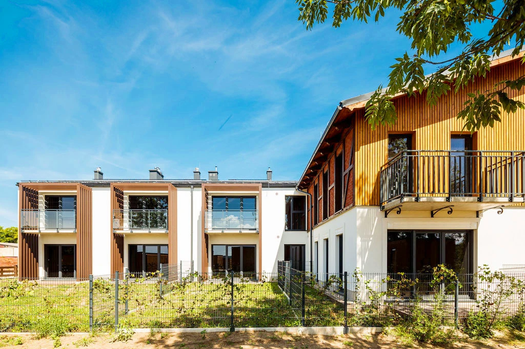 Das vorgestellte Apartment ist Teil einer exklusiven Wohnanlage mit nur 24 Einheiten, die Wohnflächen zwischen 29 m² und 66,5 m² bieten. Das Ensemble wurde auf dem Gelände eines ehemaligen Gutshof-Stalls errichtet und vereint moderne Architektur mit historischen Elementen. Besonderes Augenmerk verdienen die Fachwerkfassade sowie zahlreiche Holzelemente, die den historischen Charakter des benachbarten Palastes aufnehmen.