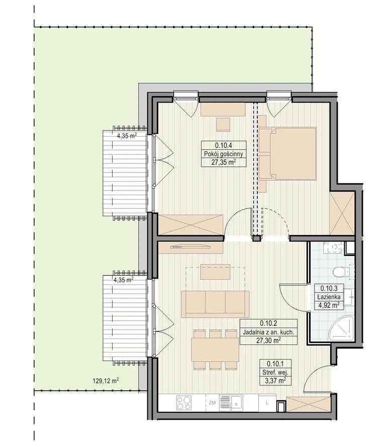 Zur Wohnanlage gehören 24 private Stellplätze. Ein Parkplatz kann zusätzlich für ca. €8.240 (PLN 35.000) netto erworben werden.