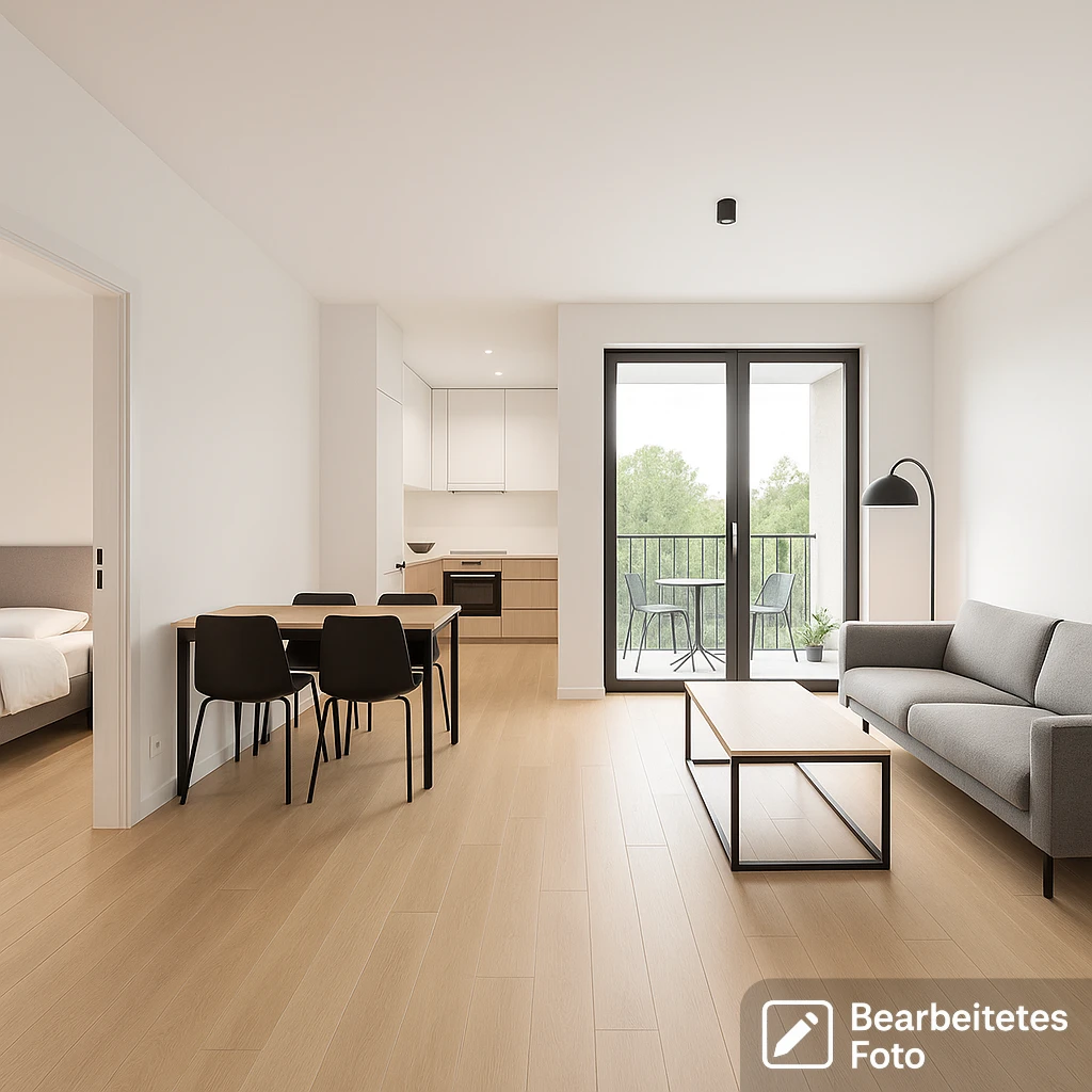 - Das erste Foto in unserer Galerie wurde leicht bearbeitet, um zu veranschaulichen, wie die Wohnung aussehen könnte – beispielsweise durch eine geänderte Wandfarbe. Die nachfolgenden Bilder zeigen den tatsächlichen Zustand der Immobilie.