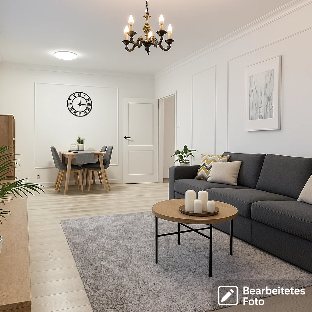 - Das erste Foto in unserer Galerie wurde leicht bearbeitet, um zu veranschaulichen, wie die Wohnung aussehen könnte – beispielsweise durch eine geänderte Wandfarbe. Die nachfolgenden Bilder zeigen den tatsächlichen Zustand der Immobilie.