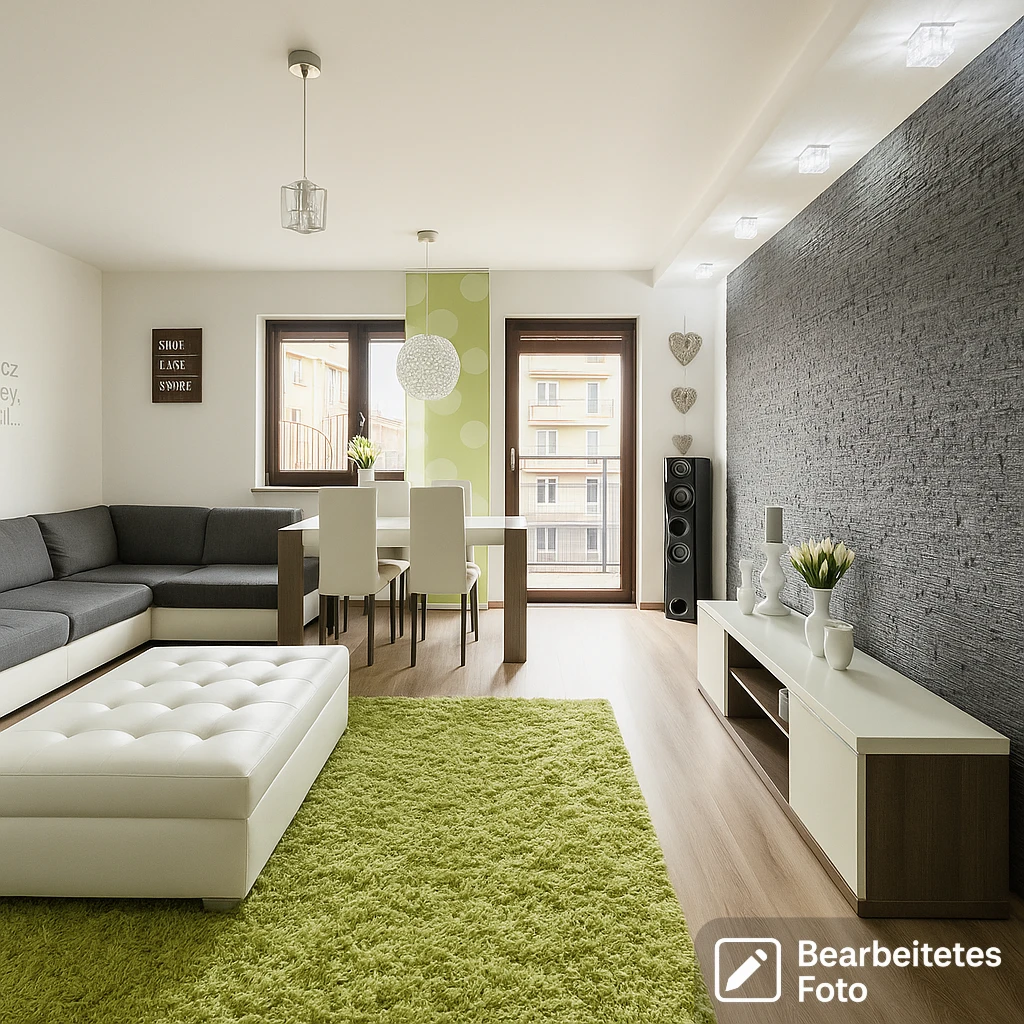 - Das erste Foto in unserer Galerie wurde leicht bearbeitet, um zu veranschaulichen, wie die Wohnung aussehen könnte – beispielsweise durch eine geänderte Wandfarbe. Die nachfolgenden Bilder zeigen den tatsächlichen Zustand der Immobilie.