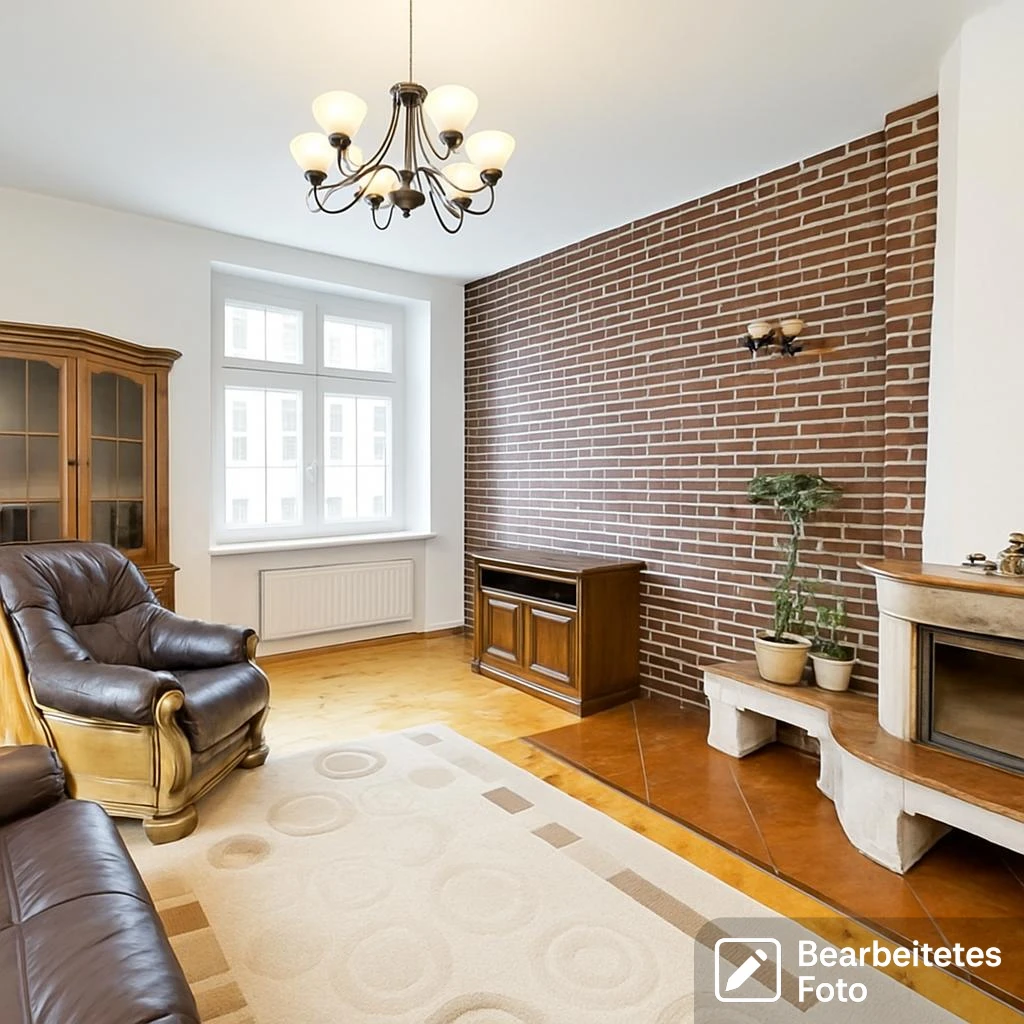- Das erste Foto in unserer Galerie wurde leicht bearbeitet, um zu veranschaulichen, wie die Wohnung aussehen könnte – beispielsweise durch eine geänderte Wandfarbe. Die nachfolgenden Bilder zeigen den tatsächlichen Zustand der Immobilie.