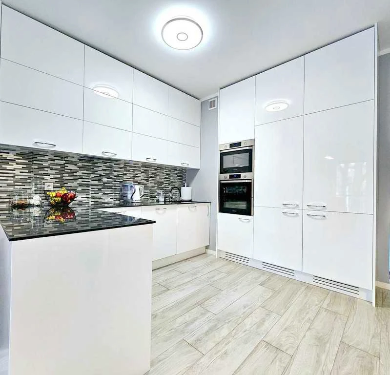 Die im Kaufpreis enthaltene, moderne Einbauküche mit hochwertigen Premium-Elektrogeräten sorgt für maximalen Komfort und fügt sich harmonisch in das stilvolle Ambiente ein.