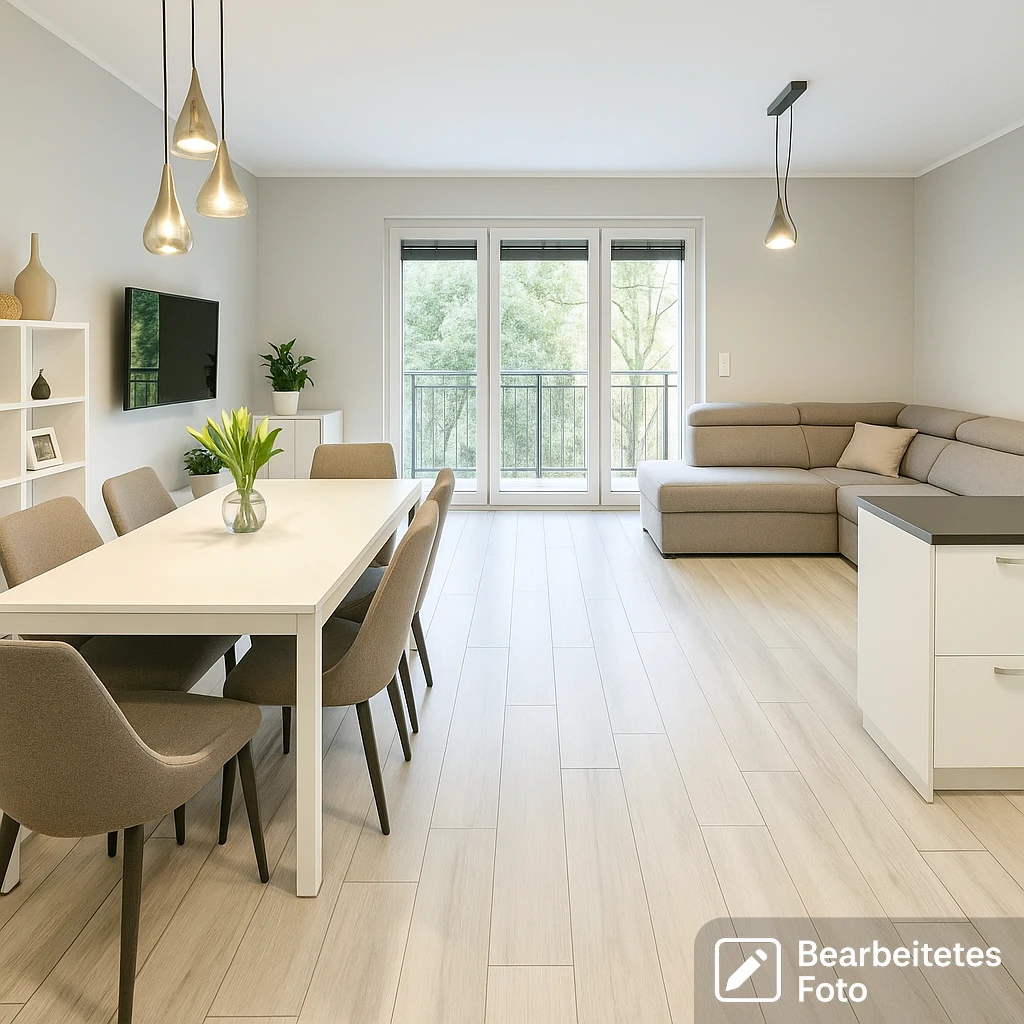 - Das erste Foto in unserer Galerie wurde leicht bearbeitet, um zu veranschaulichen, wie die Wohnung aussehen könnte – beispielsweise durch eine geänderte Wandfarbe. Die nachfolgenden Bilder zeigen den tatsächlichen Zustand der Immobilie.
