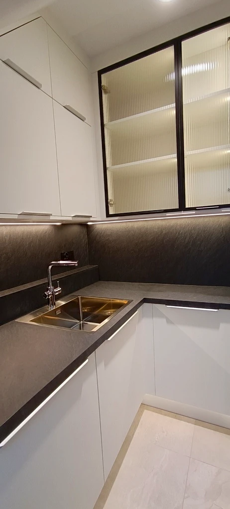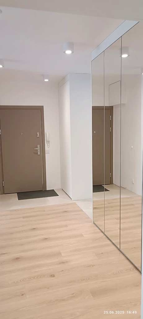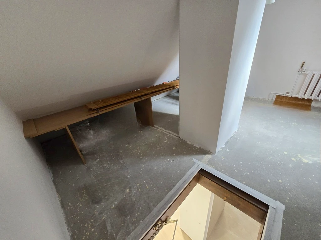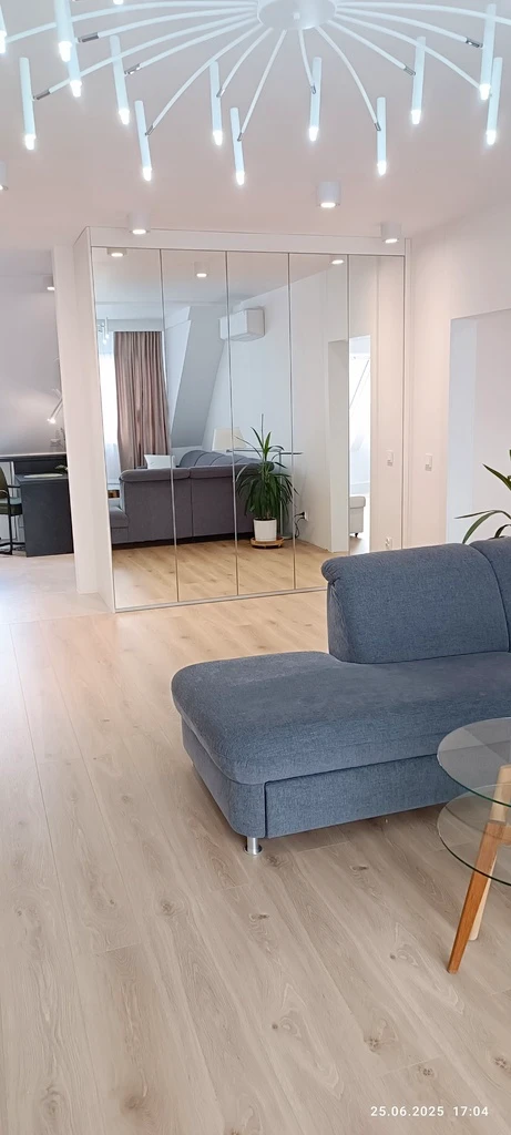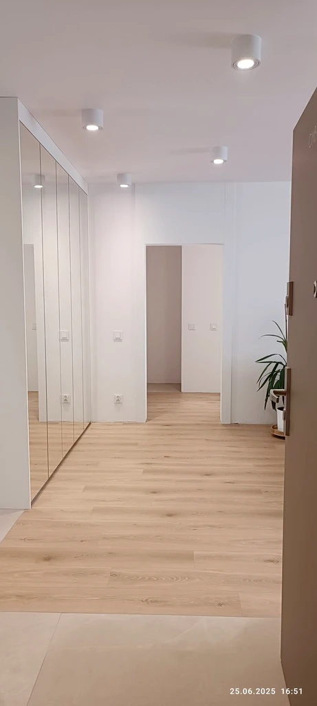 Im Zuge einer vollständigen Sanierung Ende 2023 / Anfang 2024 wurde die Wohnung komplett umgestaltet. Eine Innenwand zwischen Wohnbereich und Flur wurde teilweise entfernt.