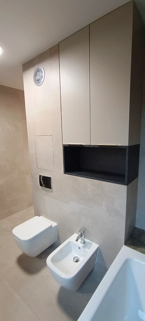 - Sanitärausstattung: BERNSTEIN (WC, Bidet, Waschbecken), GEBERIT, HANSGROHE