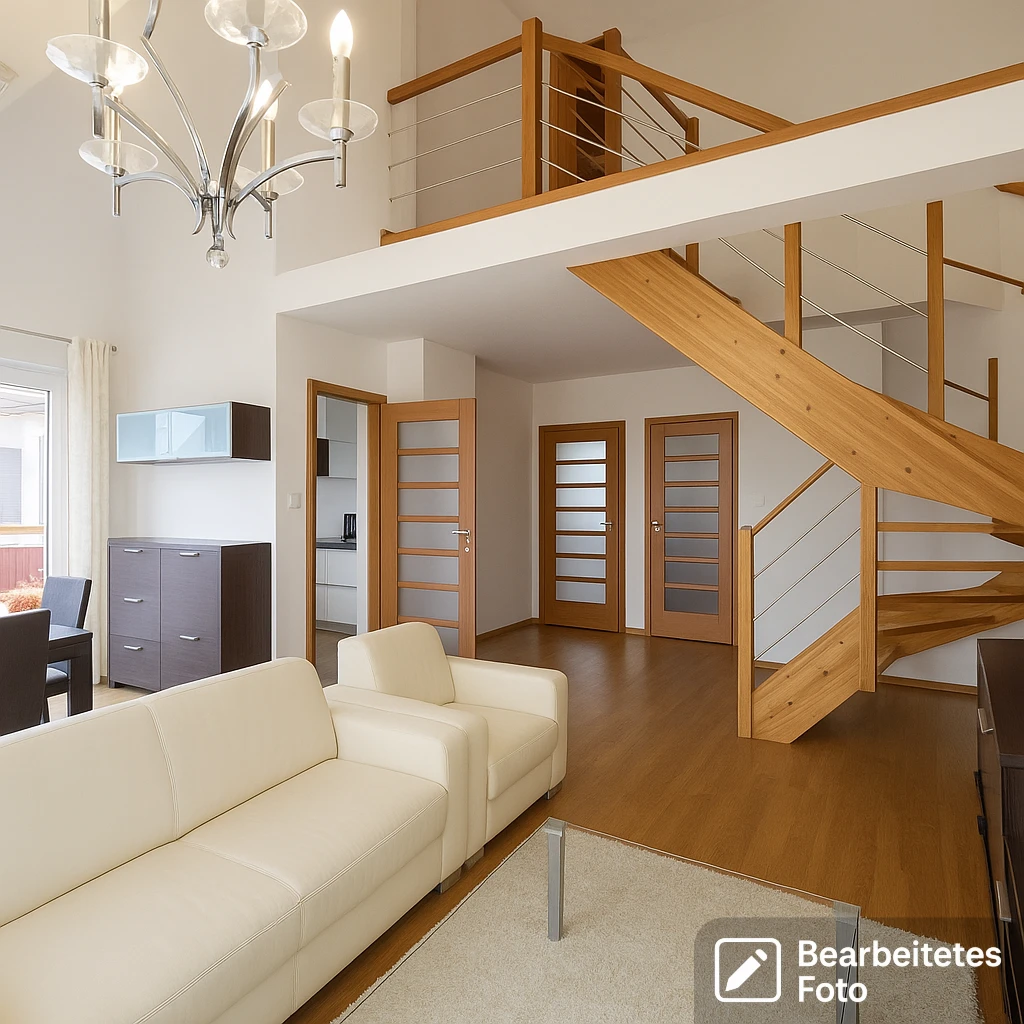 - Separate, kompakte Küche (5,48 m²), derzeit durch eine Leichtbauwand abgetrennt – diese kann bei Wunsch leicht zum Wohnbereich hin geöffnet werden