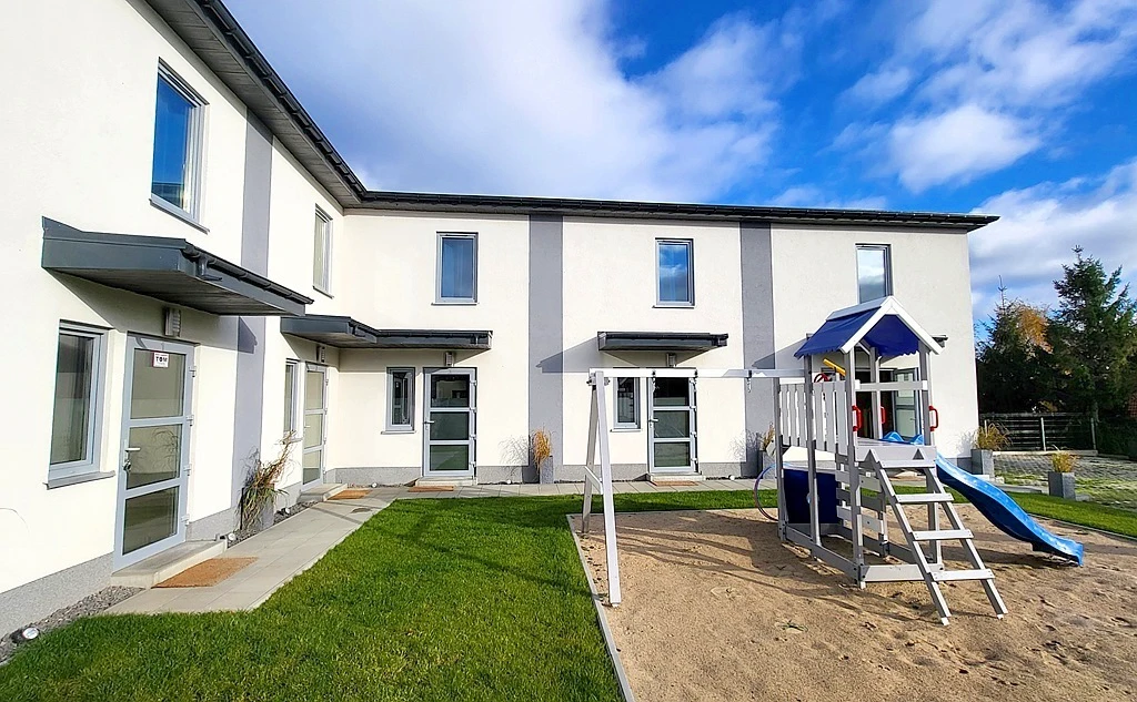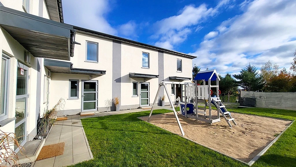 Dieses hochwertig ausgebaute Reihenhaus befindet sich in einer attraktiven Lage mit flachem Gelände und rechteckigem Grundstück. Die Immobilie wurde 2023 mit großer Sorgfalt aus langlebigem Holzmaterial errichtet und befindet sich in einem idealen Zustand – bezugsfertig ab dem 19. November 2023.
