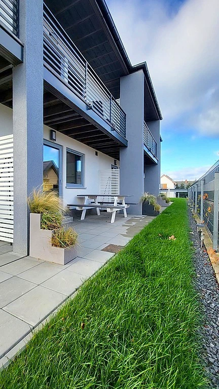 Zum Verkauf steht ein im Jahr 2023 neu errichteter, moderner Ferienhauskomplex mit einer Gesamtfläche von ca. 190 m² auf einem ca. 1.043 m² großen, gepflegten Grundstück. Die Anlage besteht aus fünf zweigeschossigen Reihenhäuschen, jeweils mit ca. 40 m² Fläche. Jedes Segment bietet Platz für bis zu 6 Personen – in Summe kann die Anlage bis zu 30 Gäste gleichzeitig beherbergen.