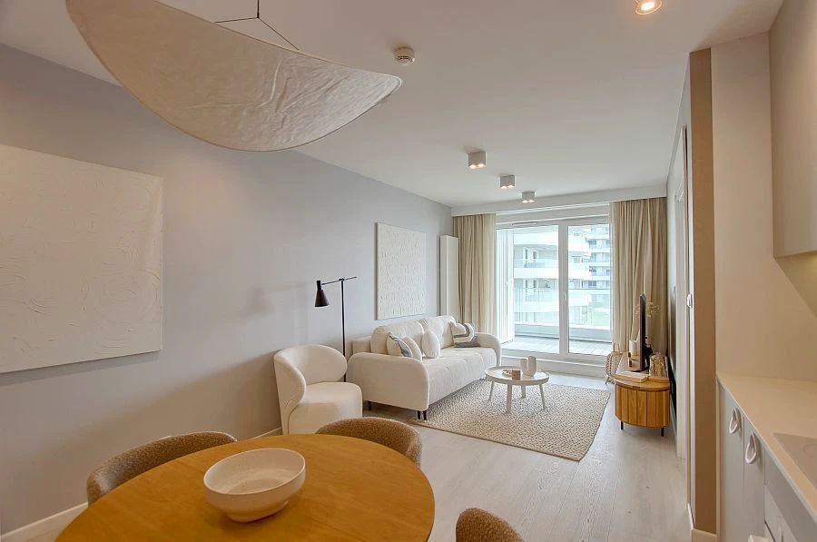 Die hochwertig ausgestattete Wohnanlage besteht aus fünf stilvollen Gebäuden mit insgesamt 550 schlüsselfertigen Apartments von 30 bis 70 m² Größe. Das hier angebotene Apartment im Erdgeschoss hat eine Fläche von 30,92 m² und ist modern gestaltet – mit offenem Küchenbereich, einem hellen Wohnraum, einem großzügigen Badezimmer sowie einem eigenen Balkon oder Garten (variierend nach Etage).