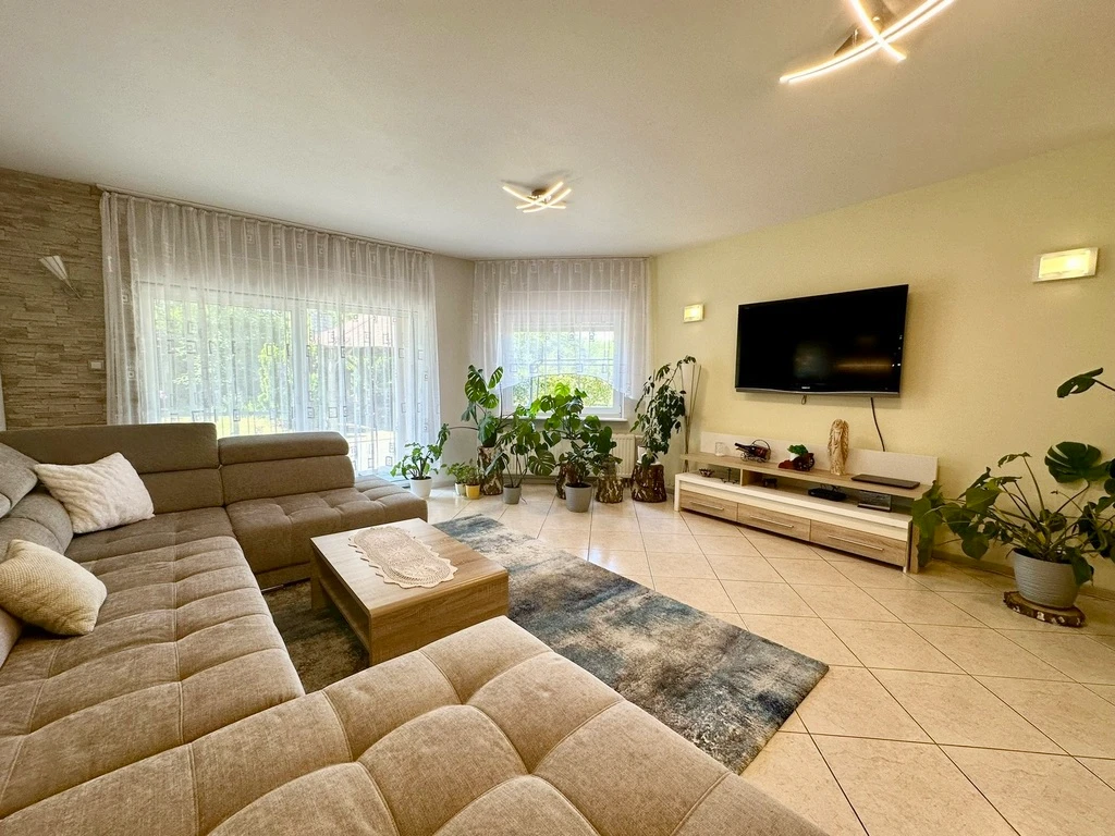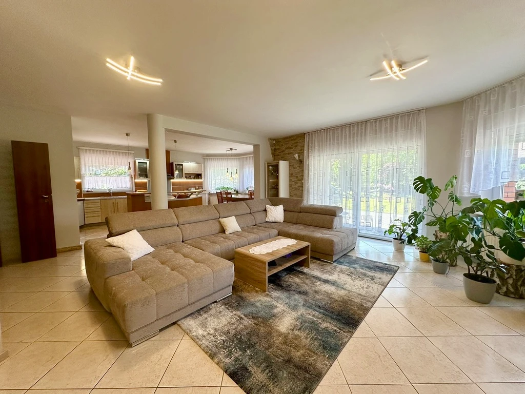 - Großer, heller Wohnbereich mit Zugang zur Terrasse und direktem Übergang zur Gartenlaube
