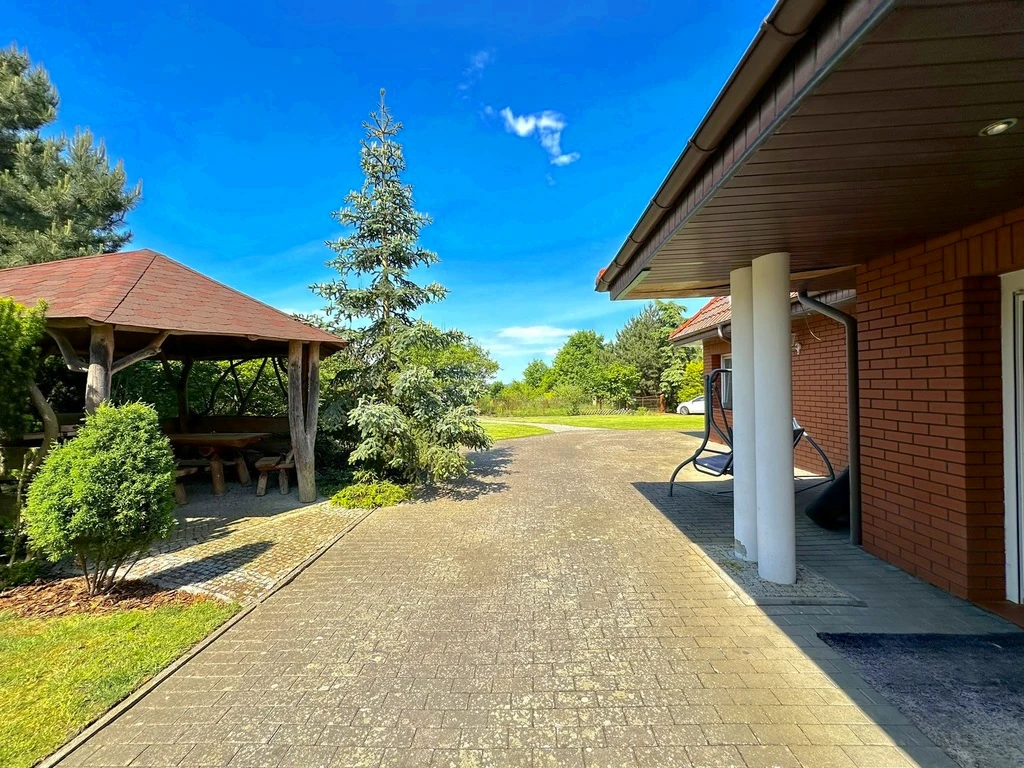 Das Anwesen liegt ruhig und idyllisch auf einer Anhöhe nahe des Bukowa-Waldes. Die grüne Umgebung sorgt für Erholung und Privatsphäre, gleichzeitig erreichen Sie das Stadtzentrum von Szczecin oder Gryfino in etwa 20 Minuten. Der Zugang erfolgt über eine asphaltierte Straße abseits des Hauptverkehrs.