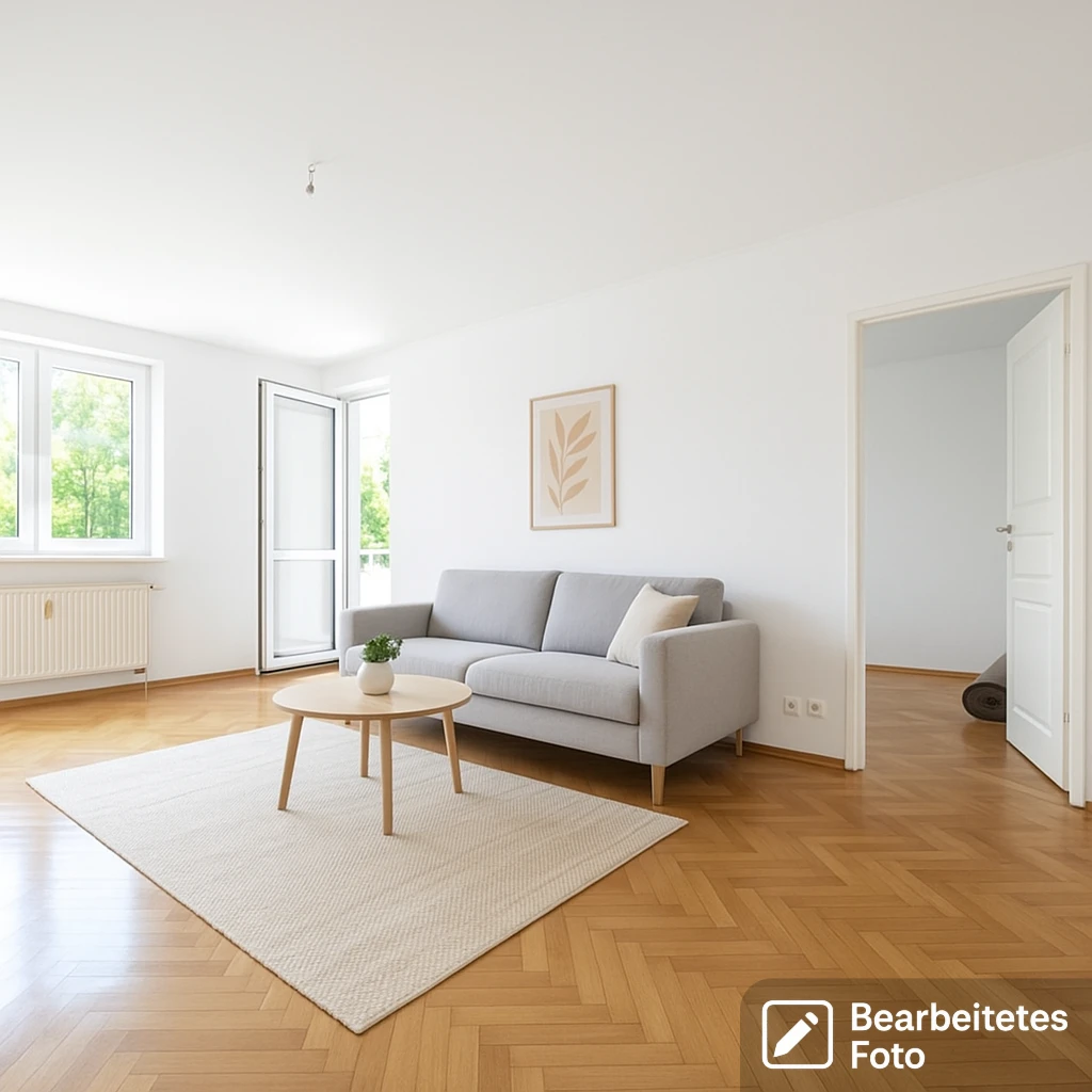- Das erste Foto in unserer Galerie wurde leicht bearbeitet, um zu veranschaulichen, wie die Wohnung aussehen könnte – beispielsweise durch eine geänderte Wandfarbe. Die nachfolgenden Bilder zeigen den tatsächlichen Zustand der Immobilie.