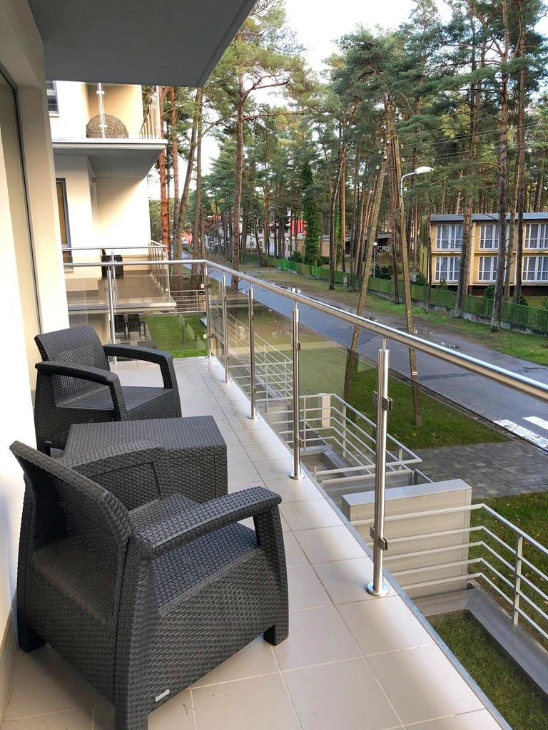Diese charmante 2-Zimmer-Wohnung mit einem ca. 14 m² großen Balkon befindet sich in einem malerischen Badeort an der Ostsee, nur etwa 200 Meter vom Strandzugang entfernt. In einer Entfernung von ca. 1,4 km liegt das größte Küstenhotel der Region – „Gołębiewski“ – das zahlreiche Attraktionen wie Schwimmbäder, SPA, Beach Bars, Bowling und mehr bietet. Die Wohnung ist südöstlich ausgerichtet und bietet einen herrlichen Blick auf den Kiefernwald – ideal zur Erholung und Entspannung.