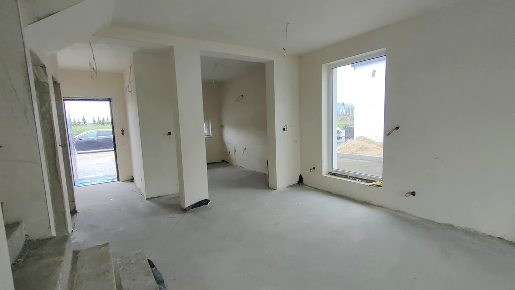 Das Grundstück misst ca. 350 m² und ist bereits von drei Seiten mit einem Zaun eingefasst. Vor dem Gebäude besteht die Möglichkeit zum Parken. Die bauliche Ausführung überzeugt mit sehr guten thermischen Eigenschaften, darunter moderne dreifachverglaste PVC-Fenster und eine fortschrittliche Bauweise mit wärmedämmendem Porenbeton. Zusätzlich sorgt eine Isolierschicht zwischen beiden Haushälften für optimalen Schallschutz. Im Erdgeschoss besteht die Möglichkeit zum Anschluss eines Kamins.