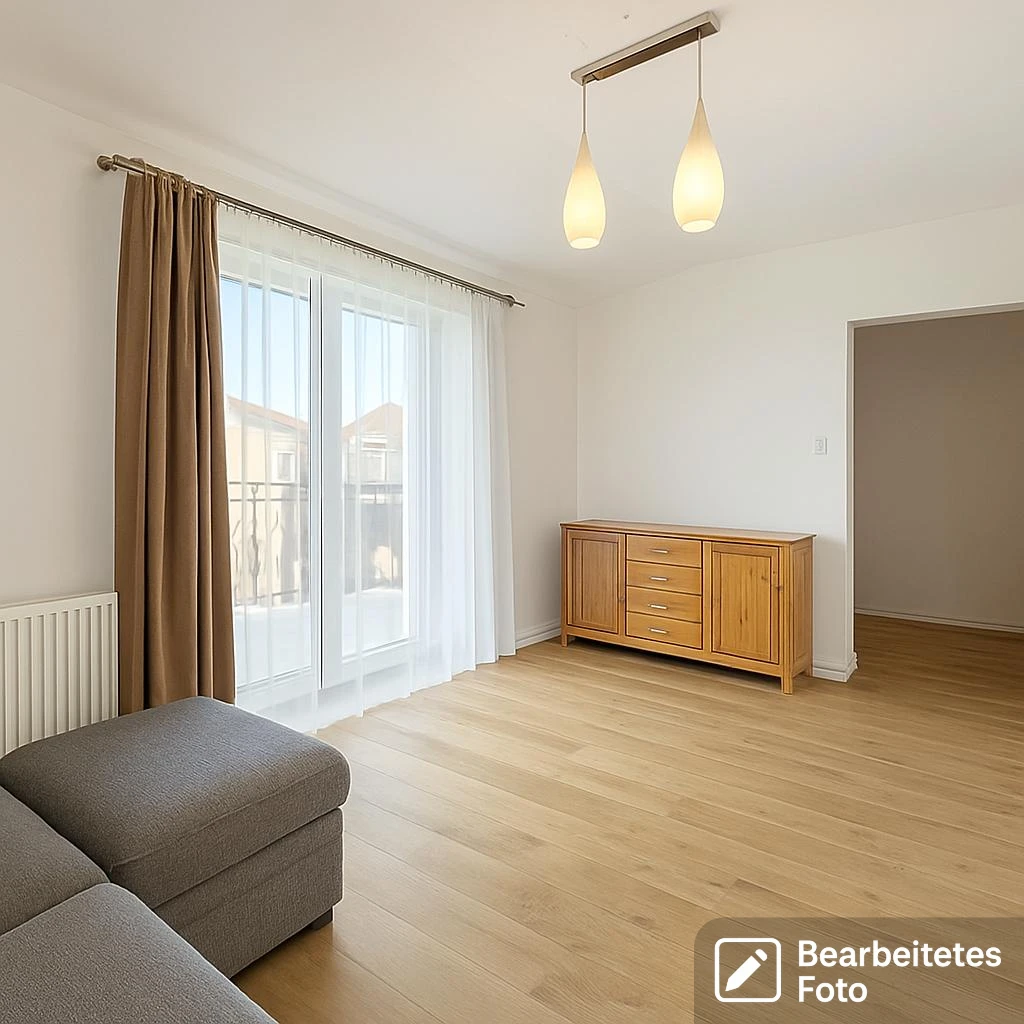- Das erste Foto in unserer Galerie wurde leicht bearbeitet, um zu veranschaulichen, wie die Wohnung aussehen könnte – beispielsweise durch eine geänderte Wandfarbe. Die nachfolgenden Bilder zeigen den tatsächlichen Zustand der Immobilie.