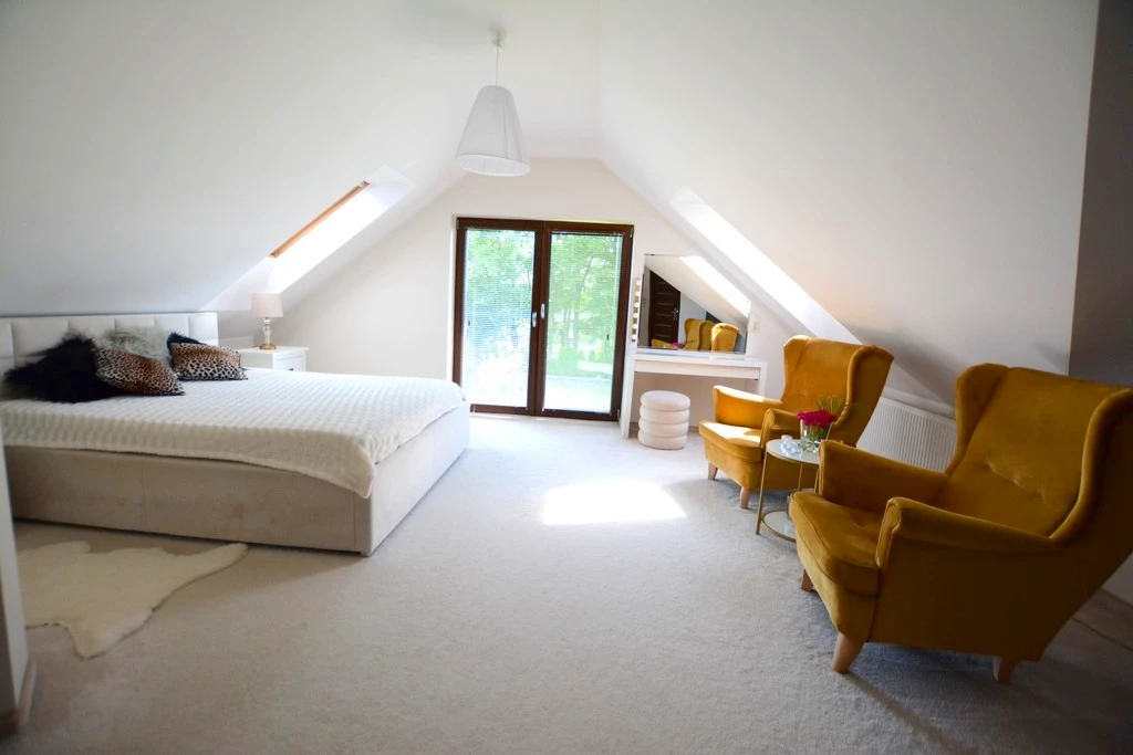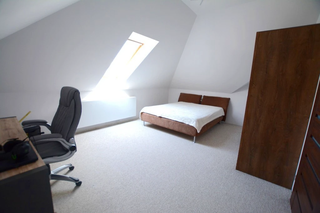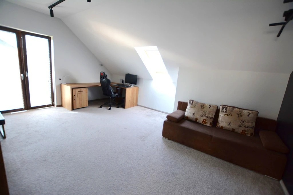 Dachgeschoss (reelle Bodenfläche in Klammern): - Hauptschlafzimmer – ca. 15,4 m² (25 m²) mit begehbarem Kleiderschrank – ca. 4 m² - Zimmer 1 – ca. 20 m² (24 m²) - Zimmer 2 – ca. 12 m² (14,7 m²) - Zimmer 3 – ca. 11 m² (22 m²) - Badezimmer mit WC – ca. 12 m² (zur freien Gestaltung) - Zusätzliches Badezimmer mit WC – ca. 8 m²