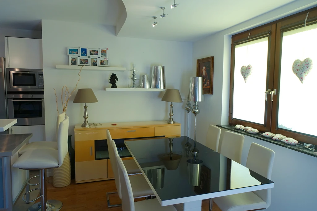 Der Boden ist mit gepflegten Laminat- und Terrakottafliesen ausgestattet. Alle Fenster verfügen über elektrisch steuerbare Rollläden.