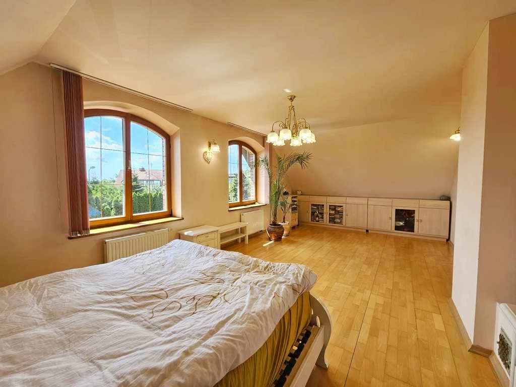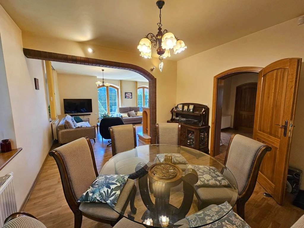 Willkommen in diesem charmanten, freistehenden Einfamilienhaus mit insgesamt ca. 350 m² Fläche (davon etwa 300,5 m² Wohnfläche), gelegen auf einem gepflegten Grundstück von 693 m² in ruhiger Lage auf dem Oberen Plateau von Gryfino. Das Haus wurde 2003 in solider Massivbauweise (Ziegelmauerwerk mit Mineralwolldämmung) erbaut und befindet sich in einem sehr guten Zustand. Dank seines durchdachten Grundrisses eignet es sich hervorragend für eine große Familie oder auch als Mehrgenerationenhaus – mit der Möglichkeit zur Teilnutzung als Büro oder Praxis.