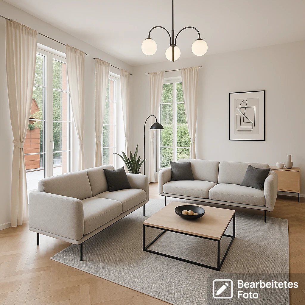 - Großzügiger, lichtdurchfluteter Wohnbereich mit direktem Zugang zur Terrasse und in den Garten