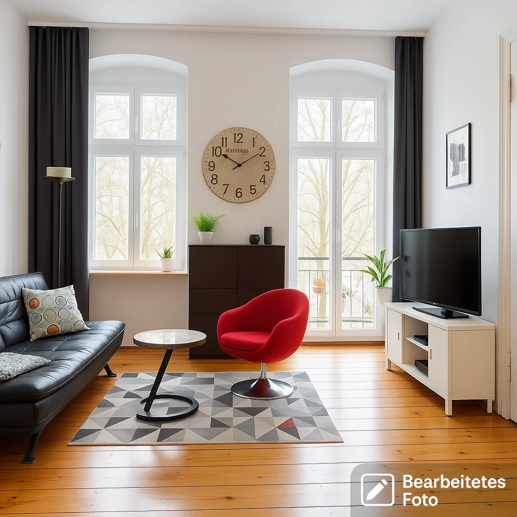 - Das erste Foto in unserer Galerie wurde leicht bearbeitet, um zu veranschaulichen, wie die Wohnung aussehen könnte – beispielsweise durch eine geänderte Wandfarbe. Die nachfolgenden Bilder zeigen den tatsächlichen Zustand der Immobilie.
