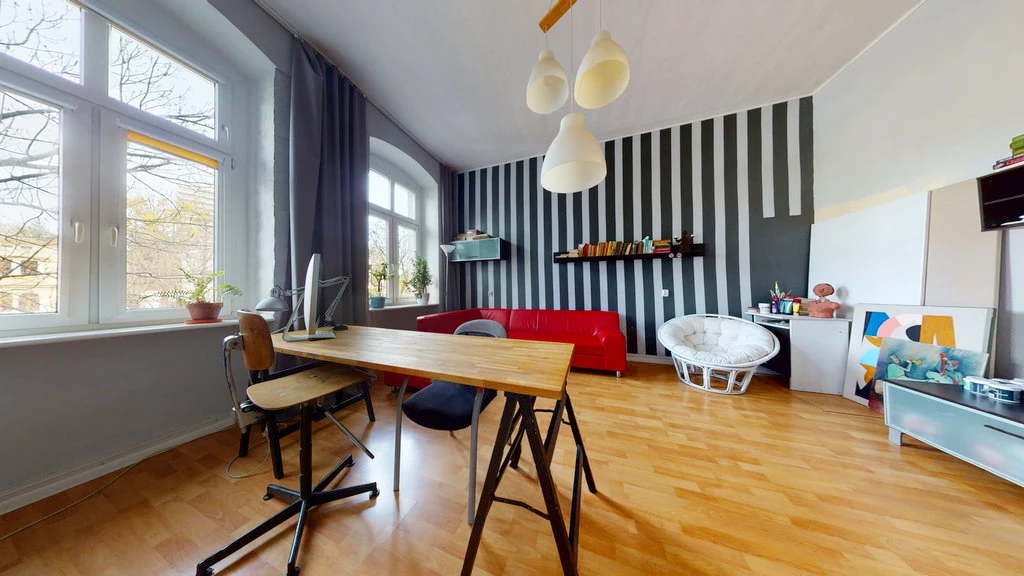 Diese stilvolle und funktional geschnittene Wohnung befindet sich im ersten Obergeschoss eines gepflegten Altbaus im Herzen von Stettin. Die grüne, ruhige Lage an der Wielkopolska-Straße bietet Blick auf wunderschöne Jugendstilvillen – eine seltene Kombination aus zentraler Lage und entspannter Atmosphäre.