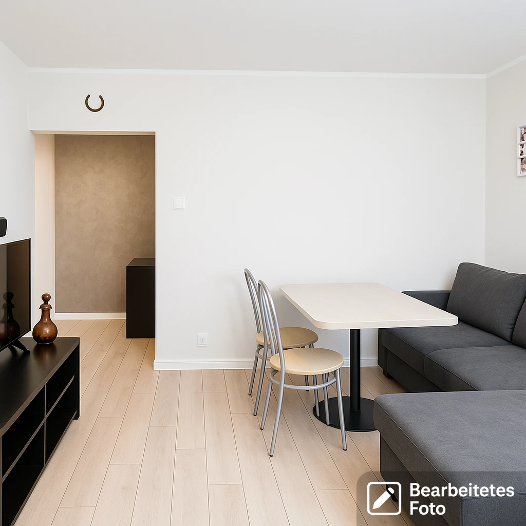 - Das erste Foto in unserer Galerie wurde leicht bearbeitet, um zu veranschaulichen, wie die Wohnung aussehen könnte – beispielsweise durch eine geänderte Wandfarbe. Die nachfolgenden Bilder zeigen den tatsächlichen Zustand der Immobilie.