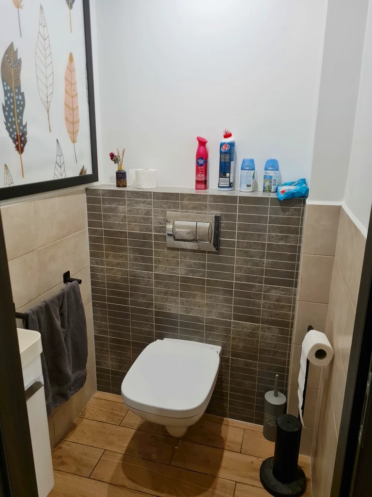 Das Badezimmer und die separate Toilette sind modern gefliest (Wand- und Bodenfliesen) und bieten funktionale Raumlösungen.