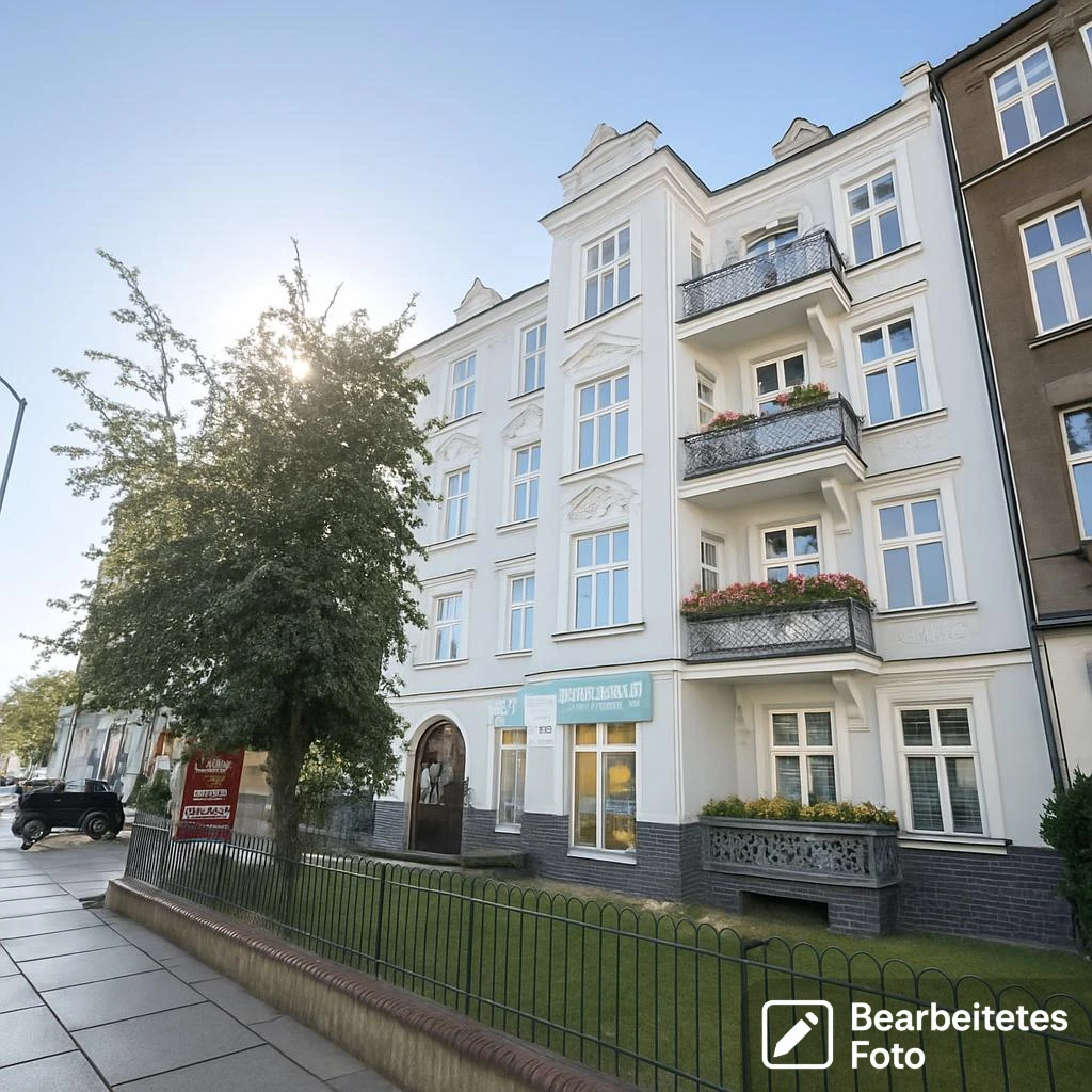 Die Immobilie befindet sich im Erdgeschoss eines gepflegten Altbaus mit renovierter Fassade – ein attraktives Ensemble in bester städtischer Lage.