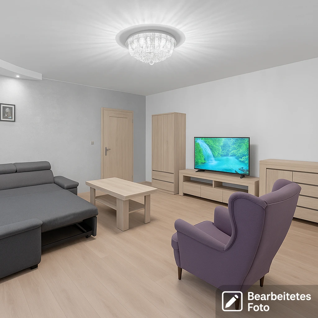 - Das erste Foto in unserer Galerie wurde leicht bearbeitet, um zu veranschaulichen, wie die Wohnung aussehen könnte – beispielsweise durch eine geänderte Wandfarbe. Die nachfolgenden Bilder zeigen den tatsächlichen Zustand der Immobilie.