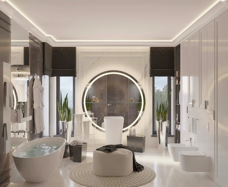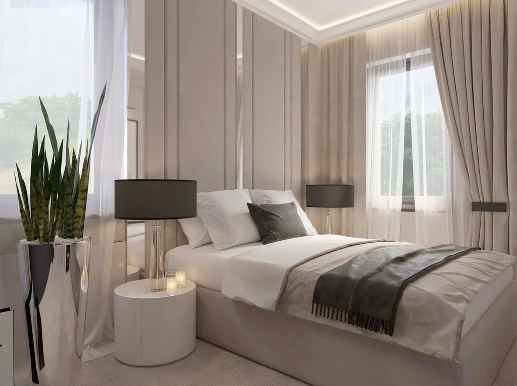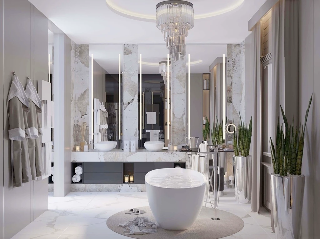 - Zweite Mastersuite im Dachgeschoss (28,14 m²) mit privater Loggia (14,92 m²) und einem sehr geräumigen Wellness-Badezimmer (15,99 m²).