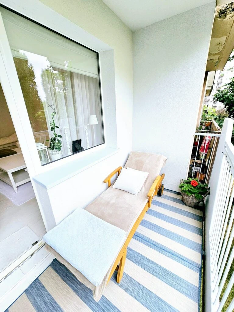 - Wohnzimmer mit Zugang zu einem geräumigen Balkon, ideal für entspannte Stunden im Freien