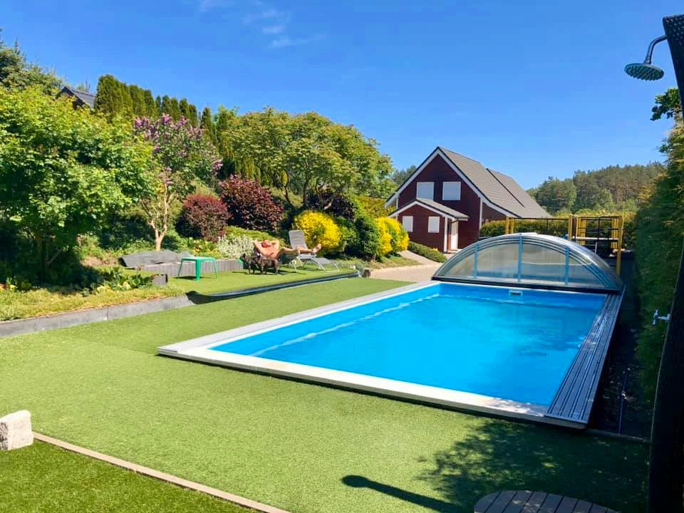 Die ruhige Lage am Waldrand verspricht eine perfekte Kombination aus Erholung und Naturverbundenheit. In wenigen Gehminuten erreichen Sie das Meer, den nahegelegenen See sowie Wander- und Radwege im Nationalpark Wolin. Der beliebte Urlaubsort Międzyzdroje ist nur etwa 15 Autominuten entfernt – ideal für Ausflüge, Shopping oder gastronomische Erfahrungen.