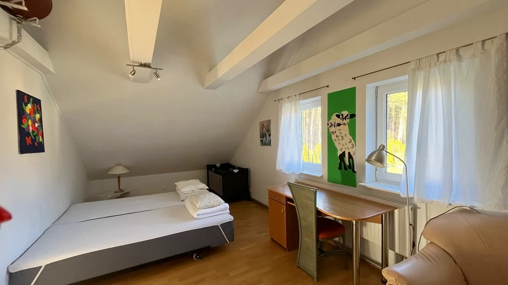Im ausgebauten Dachgeschoss befinden sich zwei weitere Schlafzimmer sowie ein zweites Badezimmer mit Dusche – ideal für Familien oder Gäste.