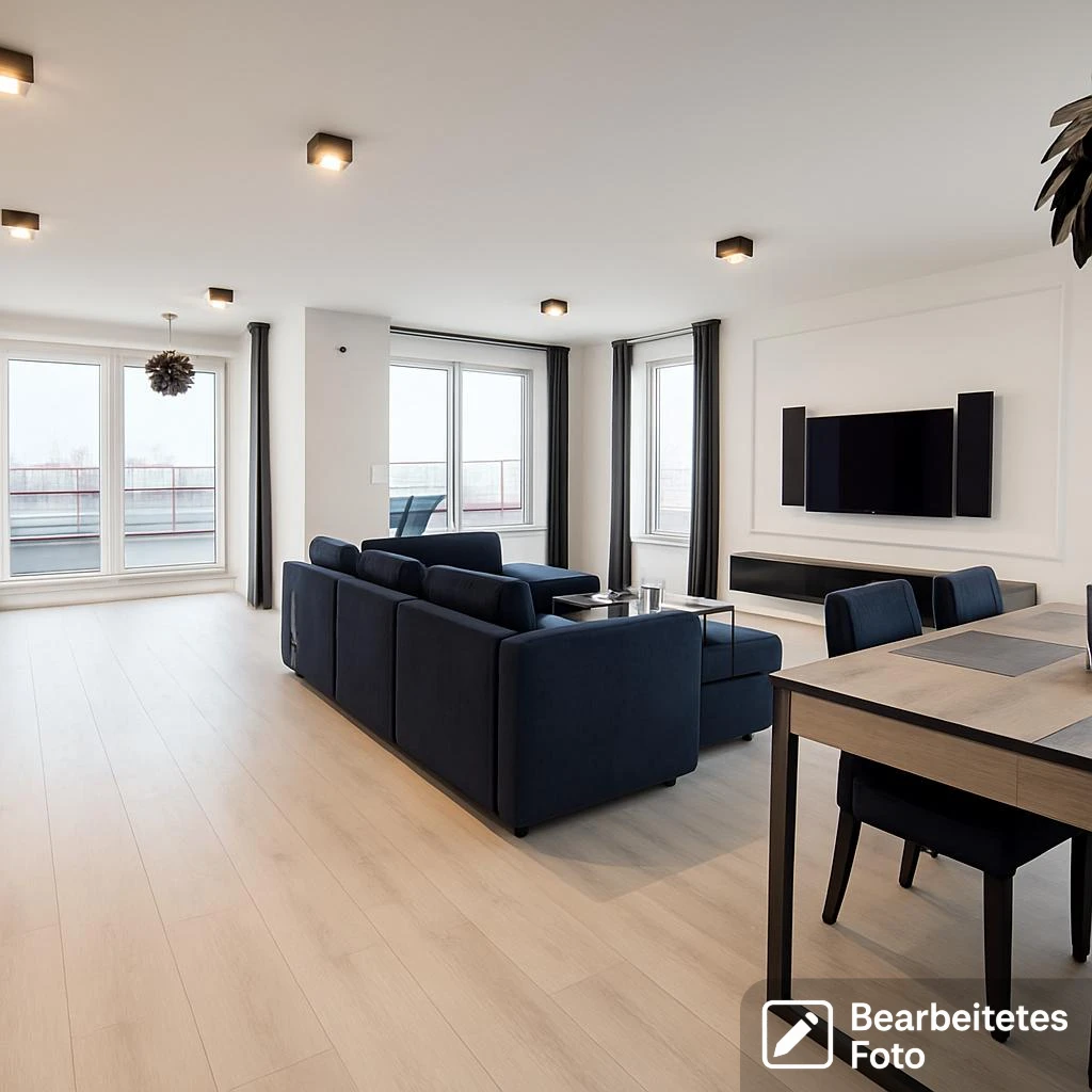 - Das erste Foto in unserer Galerie wurde leicht bearbeitet, um zu veranschaulichen, wie die Wohnung aussehen könnte – beispielsweise durch eine geänderte Wandfarbe. Die nachfolgenden Bilder zeigen den tatsächlichen Zustand der Immobilie.
