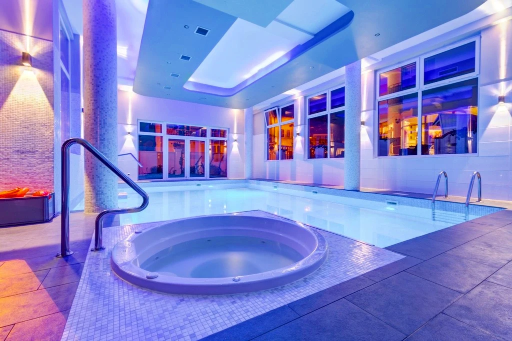 - Wellnessbereich mit zwei Swimmingpools (innen und außen), Trockensauna und Whirlpool