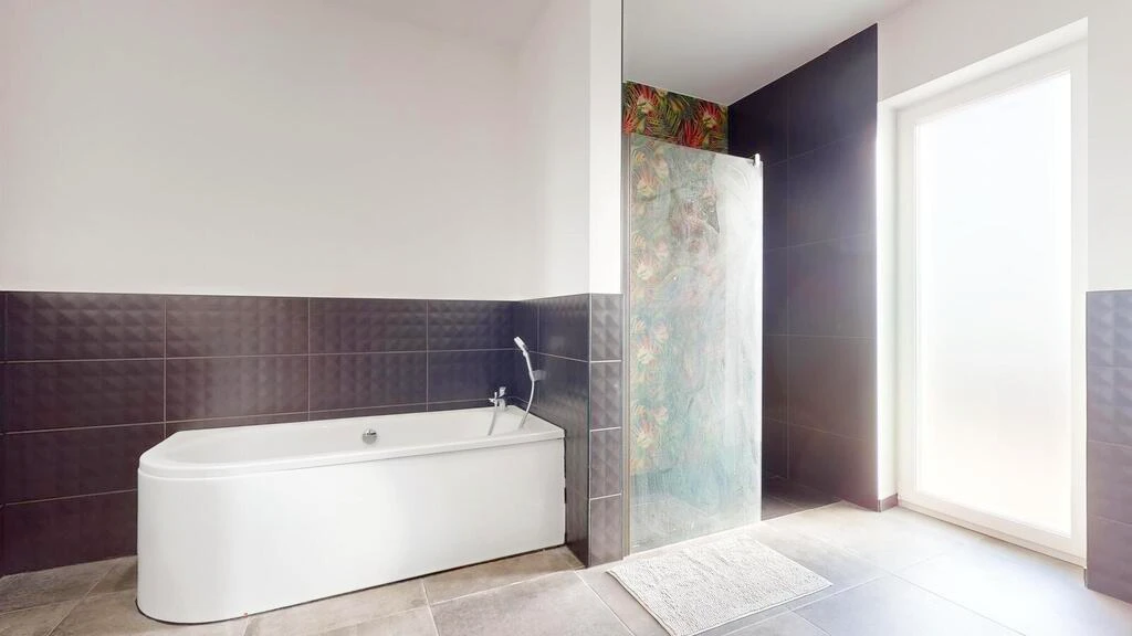 - Hauptschlafzimmer mit begehbarem Kleiderschrank und eigenem Badezimmer mit Badewanne, Dusche und WC – Ihre private Wellness-Oase