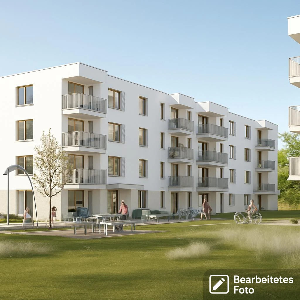 - Vollständig erschlossenes Grundstück mit Gehwegen, Grünanlagen und einem Kinderspielplatz